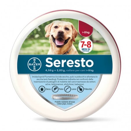 Collare antiparassitario Seresto per cani, protegge contro pulci e zecche.