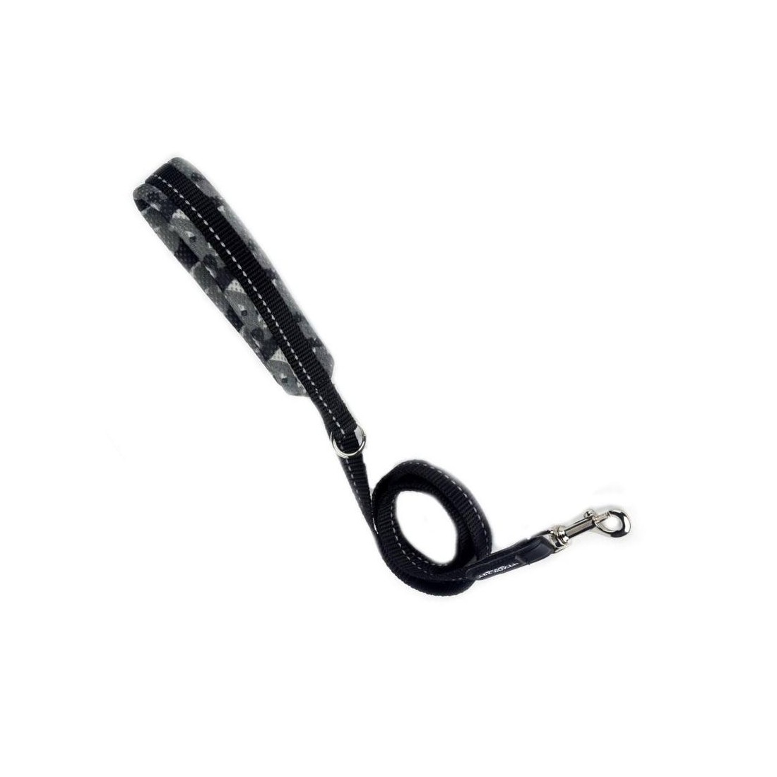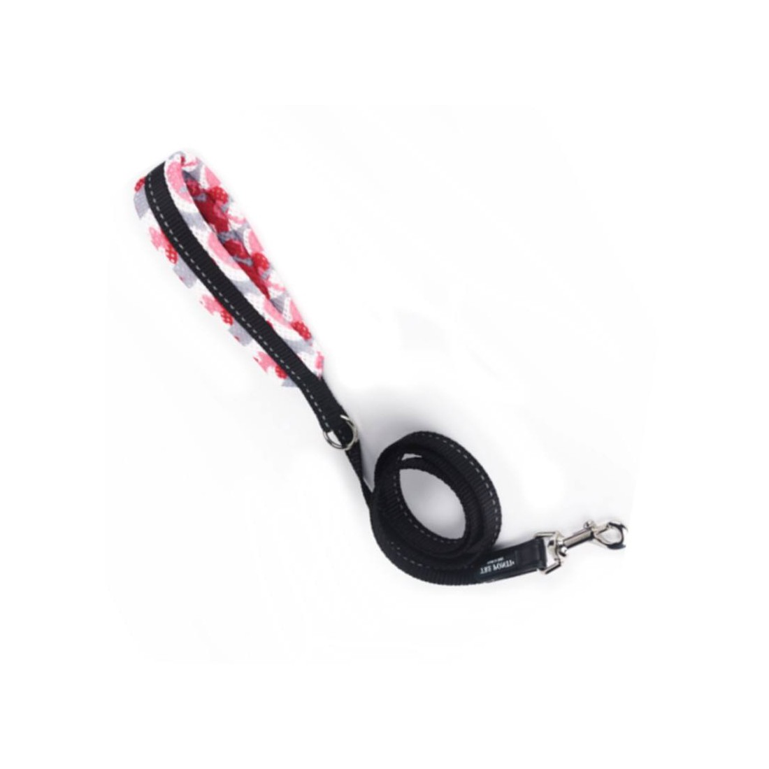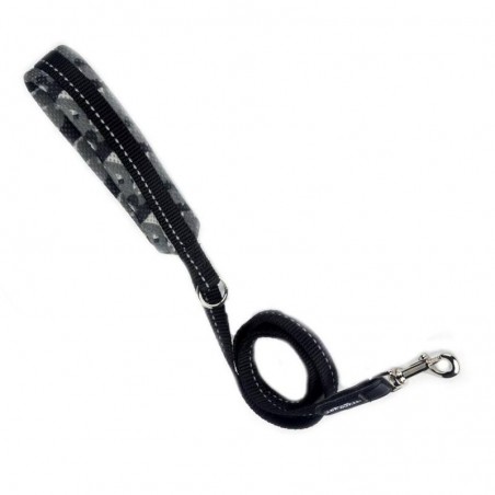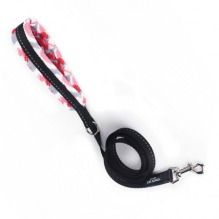 Guinzaglio per cani di piccola taglia, anello per aggancio dispenser porta sacchetti igienici, nastro con inserto rifrangente, manico imbottito in rete traspirante.