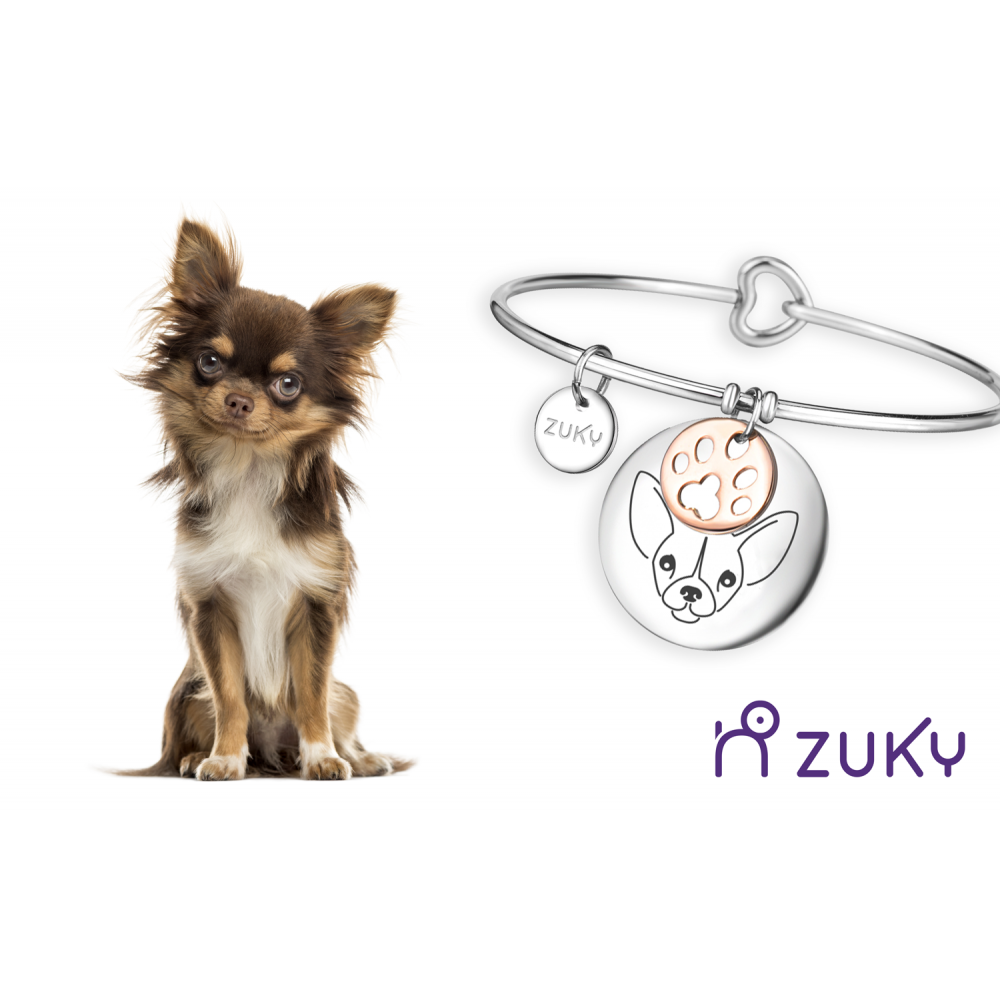 Il bracciale ZUKY con incisione a forma di Chihuahua e è dedicato a tutte le amanti di questa adorabile razza di cani