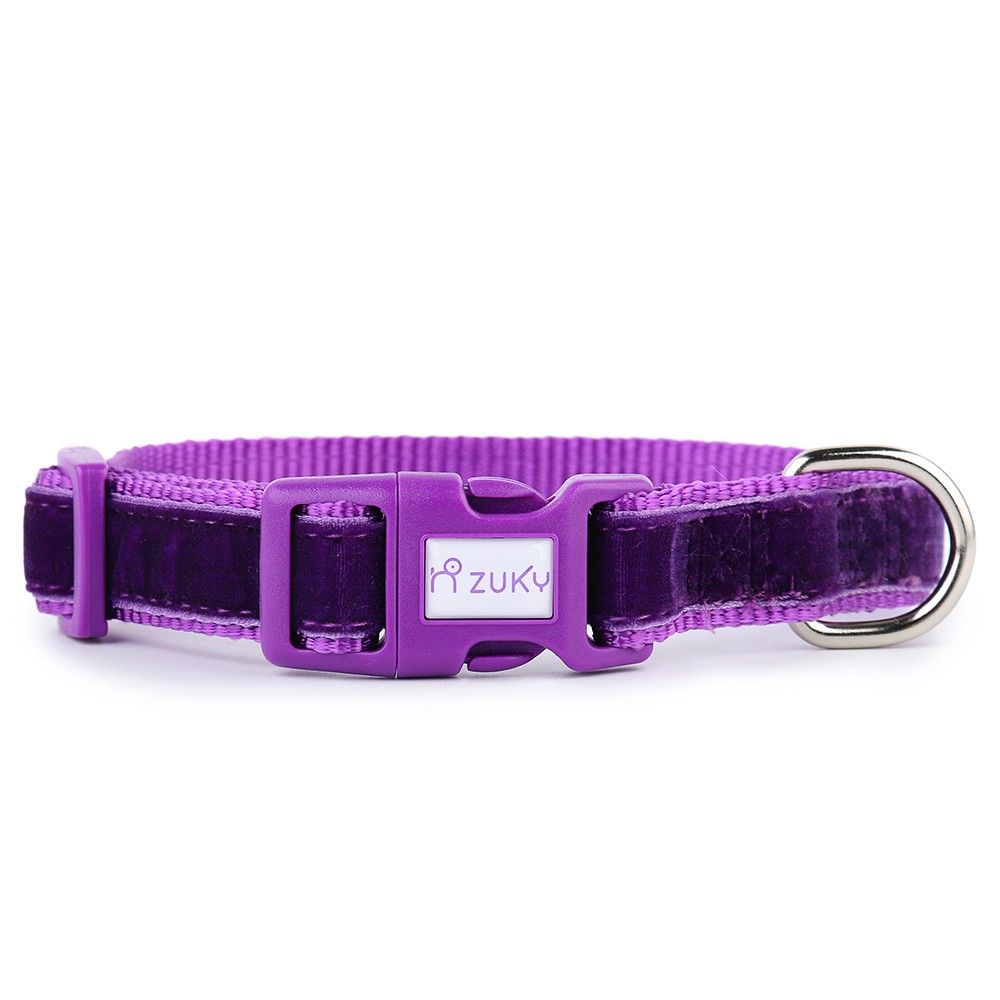 Il collare Zuky è realizzato in velluto (parte esterna) e nylon (parte interna), per renderlo allo stesso tempo elegante e resistente.