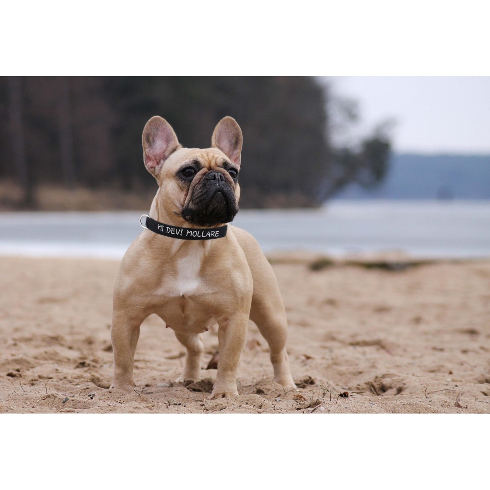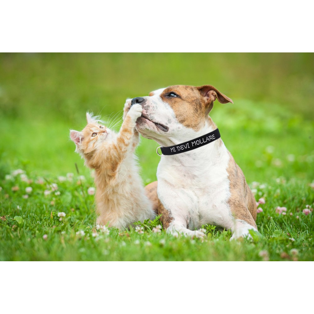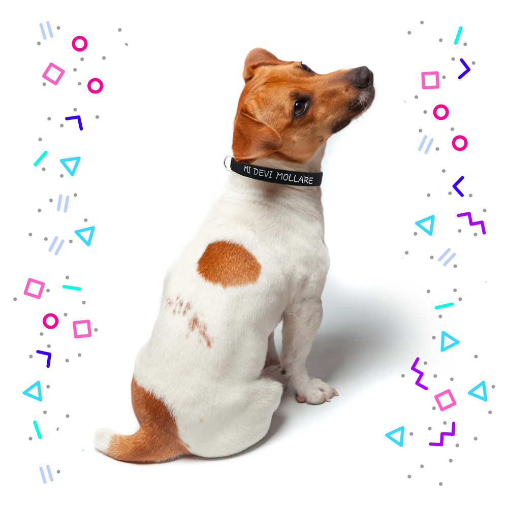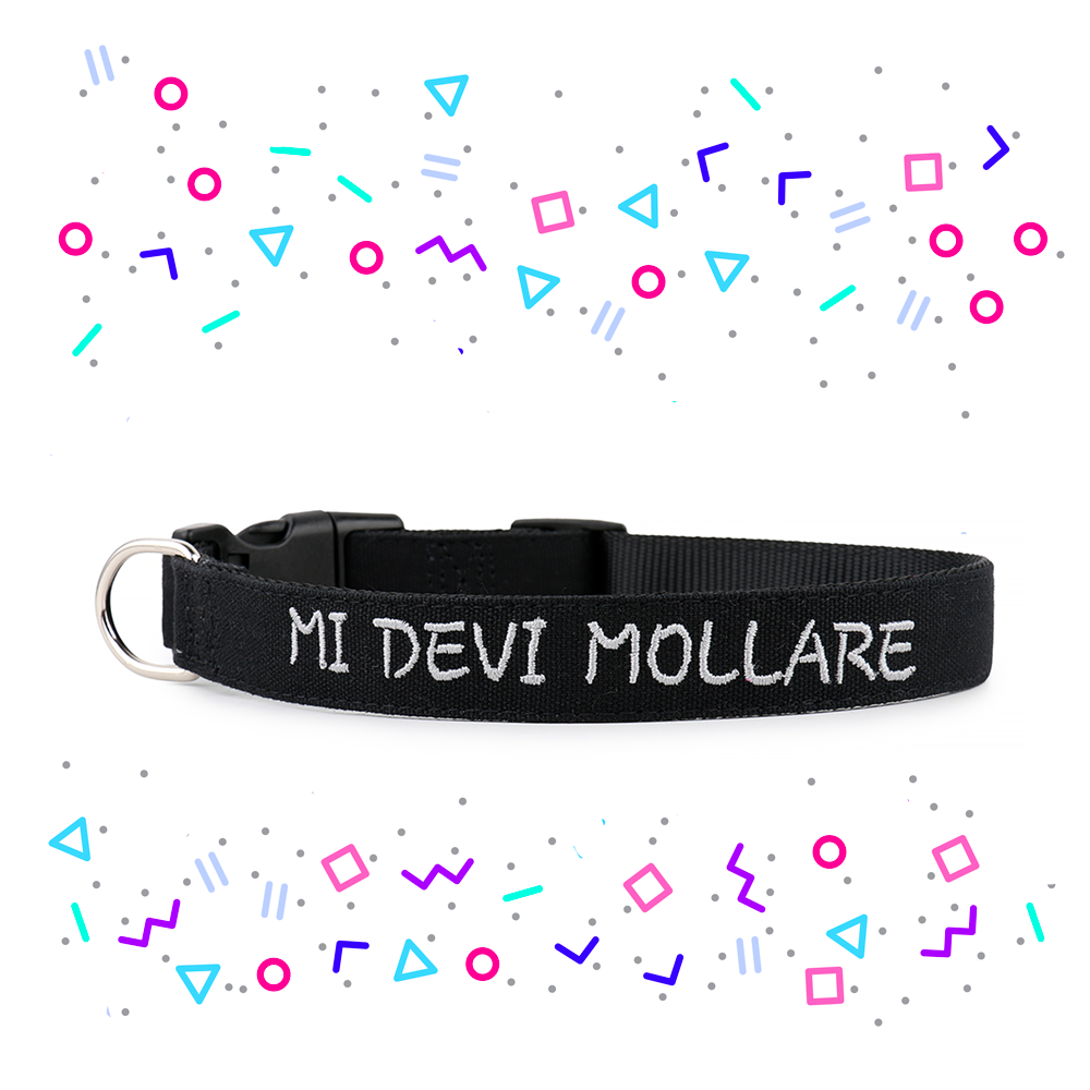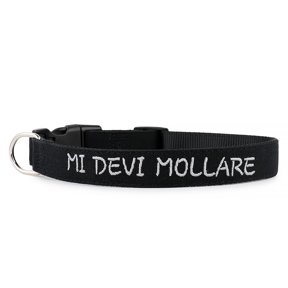 Sul collare è già ricamata la frase  “MI DEVI MOLLARE”.