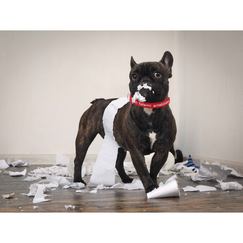 Sul collare è già ricamata la frase  “Non fatemi arrabbiare”.