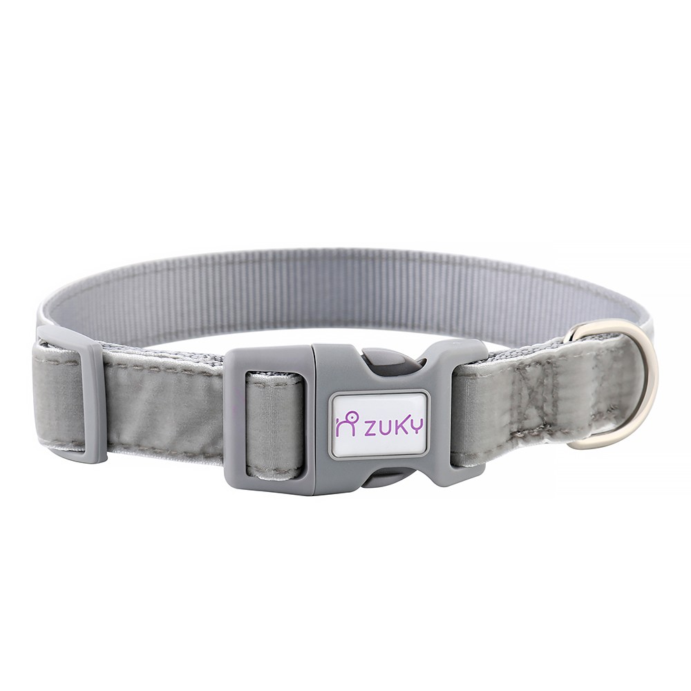 Il collare Zuky è realizzato in velluto (parte esterna) e nylon (parte interna), per renderlo allo stesso tempo elegante e resistente.